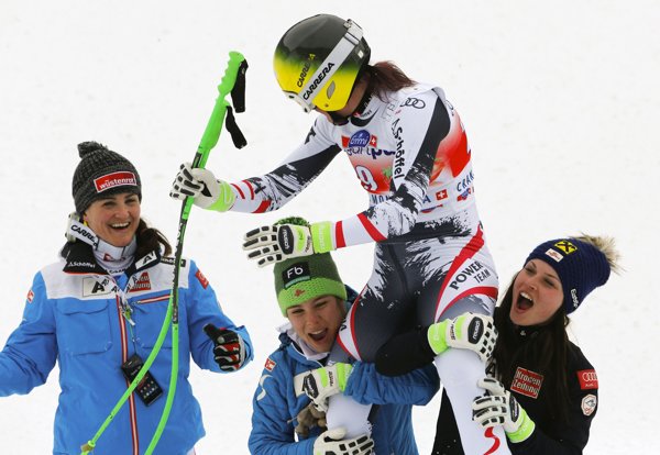 Le ragazze trovano tempo perturbato a Crans Montana, si corre solo la discesa libera ed è risultato inatteso. Si impone infatti Andrea Fischbacher, veterana austriaca con all’attivo due successi in Coppa del Mondo e l’oro olimpico di supergigante a Vancouver 2010, non convocata per Sochi 2014. La ragazzona di Schwarzach im Pognau si prende una clamorosa rivincita sorprendendo Anna Fenninger, che già si apprestava a celebrare il trionfo: scende col pettorale numero 29, recupera nella parte finale del tracciato ed anticipa la connazionale di 15centesimi. Sul terzo gradino del podio sale Tina Maze, in buone condizioni di forma dopo i due trionfi a cinque cerchi, mentre fa sensazione il quinto posto dell’emergente ungherese Edit Miklos. Le azzurre navigano a distanza, con Daniele Merighetti che risulta la migliore con il dodicesimo posto finale.