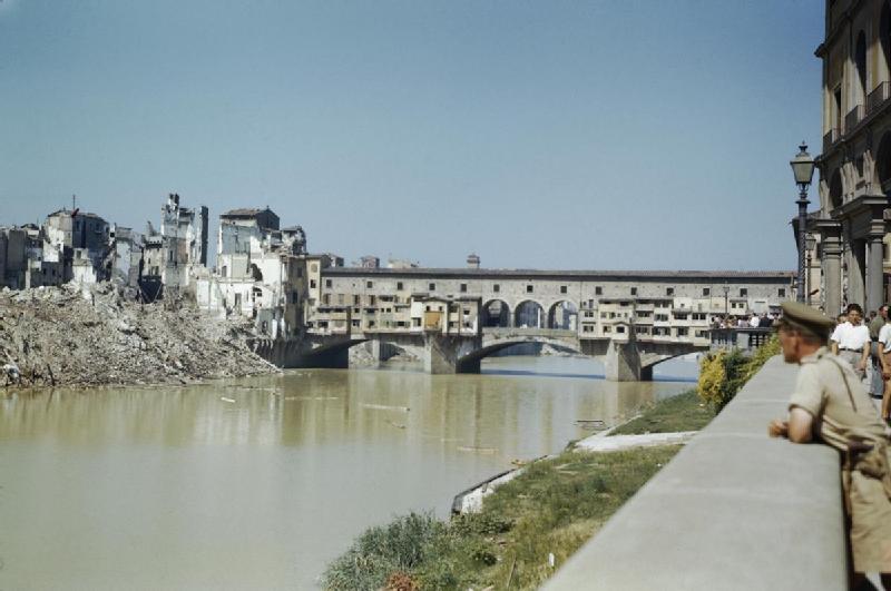 Proviamo a immaginare quale debba essere stato il dolore dei fiorentini, stremati da anni di guerra e di rinunce, con figli e mariti a combattere al Fronte, nel vedere la loro amata Città ridotta e profanata in quel modo. Si consideri poi che i danni provocati dagli Alleati sono solo una parte (anche se la più consistente) di quelli causati. I tedeschi infatti, allo scopo di non farsi inseguire nella loro ritirata dall’Italia, decisero di minare i ponti, con la conseguenza che tutti quelli storici, a eccezione del Ponte Vecchio, furono distrutti. Un atto del tutto inutile, perché queste azioni servivano solo a ritardare di qualche giorno l’avanzata degli Alleati: per lanciare un ponte di ferro sull’Arno, che sostituisse il Ponte Santa Trinita, per citare uno dei più belli di Firenze, i genieri inglesi e americani impiegavano infatti poco più di una giornata; ma queste sono considerazioni che, quando la follia trionfa, hanno ben poco spazio nella mente degli uomini.