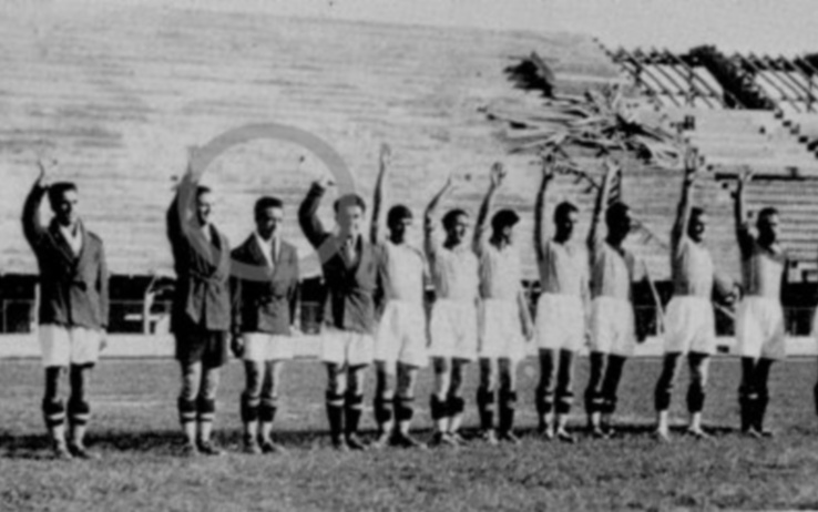 Inaugurazione dello Stadio Comunale, col calciatore Bruno Neri che rifiuta di fare il saluto romano (da sport.sky.it)