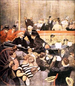 Sul trono di Casa Savoia regnava in quegli anni Umberto I, figlio di Vittorio Emanuele II, Sovrano ricordato positivamente da alcuni, al punto da essere soprannominato il “Re Buono”, e avversato da altri per il suo duro conservatorismo, che culminò nell’avallo delle repressioni dei moti popolari del 1898, suggellati dalla sciagurata decisione di concedere un’onorificenza al Generale Fiorenzo Bava Beccaris, per l’azione “meritevole” di soffocamento dei moti medesimi, scoppiati a causa del forte aumento del prezzo del grano e costati la vita a più di 100 manifestanti. Concedere un’onorificenza all’autore di uno dei peggiori massacri della storia nazionale fu davvero troppo, e così Umberto, che già aveva patito altri attentati, il 29 luglio 1900 subì, a Monza, quello che gli costò la vita (figura 106). […] Con la morte di Umberto, sale al trono Vittorio Emanuele III.