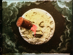 Intenso, coinvolgente anche grazie al 3D, magico. L’Hugo Cabret-storia è incantesimo puro, quello che porta un ragazzino a gestire l’impianto meccanico degli orologi di una stazione, è favola la storia, con un finale facilmente intuibile. Viene in mente Edward mani di forbice, seppur con enormi differenze. C’è coinvolgimento, passione e ironia in un racconto – tratto dal romanzo “La straordinaria invenzione di Hugo Cabret” di Brian Selznick del 2007 – che non può non interessare chi è dall’altra parte dello schermo. Partendo da un vissuto familiare difficile si arriva alla soluzione del dramma: il cinema “creatore di sogni”, come sottolineato nelle battute degli attori, come antidoto alla tragica realtà, l’arte come ricompensa alla sofferenza. La volontà del regista di stupire e associare il vecchio – con la riproposizione di un antenato del cinema – con il nuovo – la tecnologia – è notevole, ma non riesce in pieno, vista la difficoltà del mix. La proiezione è infatti un omaggio alle origini del cinema: quello dei fratelli Lumière di fine Ottocento e quello appena successivo di Georges Méliès, autore dei primi film di fantascienza e capace nel suo studio d’immense vetrate di allestire palcoscenici d’ogni tipo e sperimentare nuove tecniche di ripresa. La pellicola più nota, Viaggio nella luna (foto flickr, qui sopra), è anche quella che caratterizza la storia del lungometraggio di Scorsese. In questo conflitto-amplesso tra vecchio e nuovo, il concetto di tempo è ben esemplificato dall’orologio di Montparnasse.