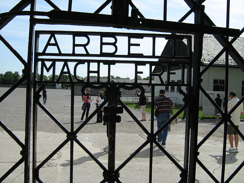 Il cancello d’ingresso al campo di Dachau. Da Wikipedia