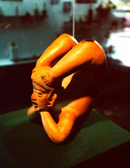 La nostra marcia, dopo quasi due ore, inizia inevitabilmente a rallentare; le gambe sono pesanti e con moderata attenzione “passeggiamo” per le ultime quattro sale di cui il Museo si compone al piano terra. La Sala 9 è la sala del Preclassico degli Altipiani Centrali, in cui viene descritto il passaggio compiuto dalle popolazioni di queste zone da una vita normale di cacciatori ad un’esistenza basata sull’agricoltura. Tra gli antichissimi oggetti qui esposti spiccano il vaso dell’acrobata, che raffigura un contorsionista, e le statuette di donne con gli organi genitali bene in vista, simbolo della fertilità femminile che ben si sposa con la fertilità della terra. La Sala 10 illustra i primi insediamenti umani; la Sala 11 è la sala del Mesoamerica, dove sono raccolte opere provenienti da diverse regioni culturali e di diversa epoca; l’ultima sala, la Sala 12, introduce all’antropologia.
