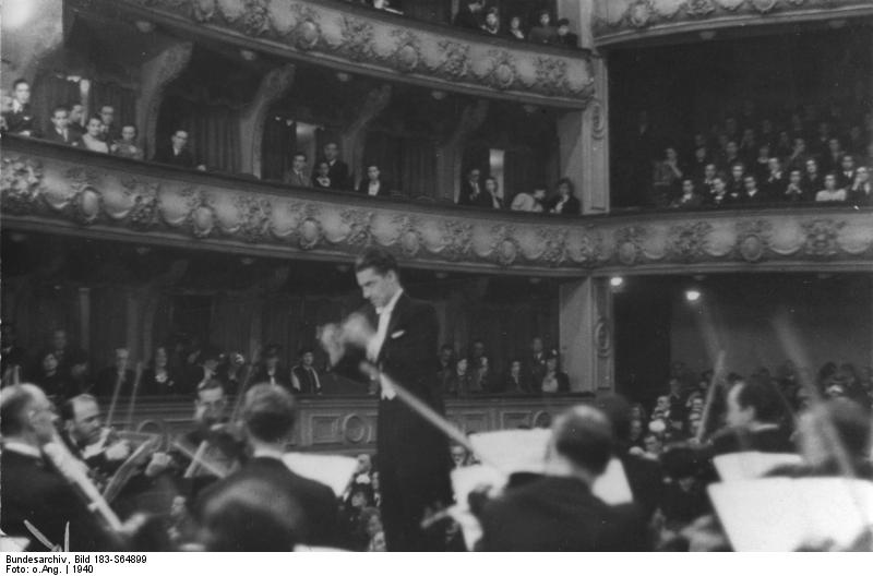 Von Karajan mentre dirige a Madrid nel 1940 (foto anonima da Wikipedia)