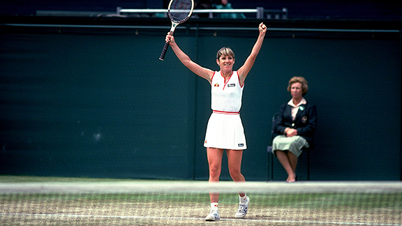 2- Martina Navratilova. Martina, appunto. La più forte tennista di sempre sui campi verdi, un misto di potenza e tecnica che per i tempi in cui si è esibita apparteneva più al genere maschile che alle donzelle. Ineguagliabile il suo gioco di volo, così come le nove vittorie nel torneo…e accidenti a Conchita Martinez, non me ne voglia, che nel 1994 gli ha negato il titolo numero 10.