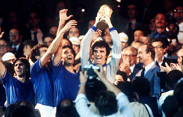 1982, è l’anno del Mondiale in Spagna. L’Italia è più o meno la stessa di quella argentina, con l’aggiunta di Bruno Conti e Paolo Rossi reduce dalla squalifica di due anni inflitta per il calcioscommesse. Tre pareggi con Polonia, Perù e Camerun ci qualificano senza troppi onori al secondo turno e qui Brasile e Argentina sembrano baluardi impossibili da abbattere. Ma il 2-1 contro Maradona e compagni firmato da Tardelli e Cabrini scuote i nostri, il silenzio stampa è d’oro e il gruppo trova l’alchimia giusta per disegnare un percorso memorabile. Rossi esce dal letargo nei giorni che contano, tre gol al Brasile e una doppietta alla Polonia spalancano la porta alla finalissima. Dove la Germania nulla può, ancora Rossi, l’urlo-gol di Tardelli e il tris di Altobelli sotto gli occhi di Pertini issano gli azzurri sul tetto del mondo per la terza volta.