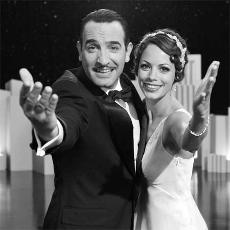 Chi sono gli attori? Jean Dujardin e Bérénice Bejo (moglie del regista), una coppia perfetta. Con questa performance il primo ha vinto a Cannes il premio per la miglior interpretazione maschile, grazie a una sagoma e una mimica – soprattutto facciale – che richiama in toto gli attori di quell’epoca; la seconda, ragazza dal neo disegnato, ha uno sguardo, una vitalità e una freschezza che ben rappresenta il personaggio della vicenda.