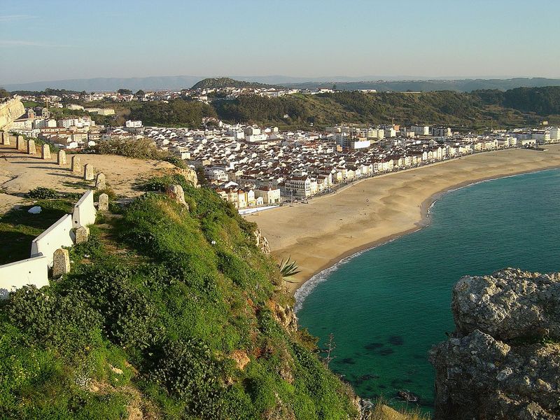 Nazaré è un villaggio di pescatori nella subregione Ovest del Portogallo, in Estremadura, nel distretto di Leiria. È uno scoglio che sprofonda nell’Oceano, il che è tipico della costa portoghese, dove le rocce si buttano a strapiombo nell’acqua e scendono dritte come se le avesse tagliate una lama, lasciando davanti a sé pochi metri di spiaggia spesso brulla, innervata da spuntoni petrosi, tormentata da dune spesso mobili, e che in genere s’inabissa nell’Oceano all’improvviso, con una discesa breve e ripida interrotta da un gradino che ti butta senza preavviso nell’acqua alta. Il paesaggio portoghese è così: come la descrizione che Giuseppina Strepponi diede dell’anima del marito, Giuseppe Verdi: selvaggia verginità d’idee e di sentimenti. La terra è rossastra, la sabbia è sassosa, la montagna è scoscesa, la solitudine è immensa: si possono attraversare in auto delle città senza vedere in giro anima viva; si può guidare per intere autostrade senza imbattersi mai in un’altra vettura. E il paesaggio sembra sia stato a mala pena modificato dalla mano umana.
